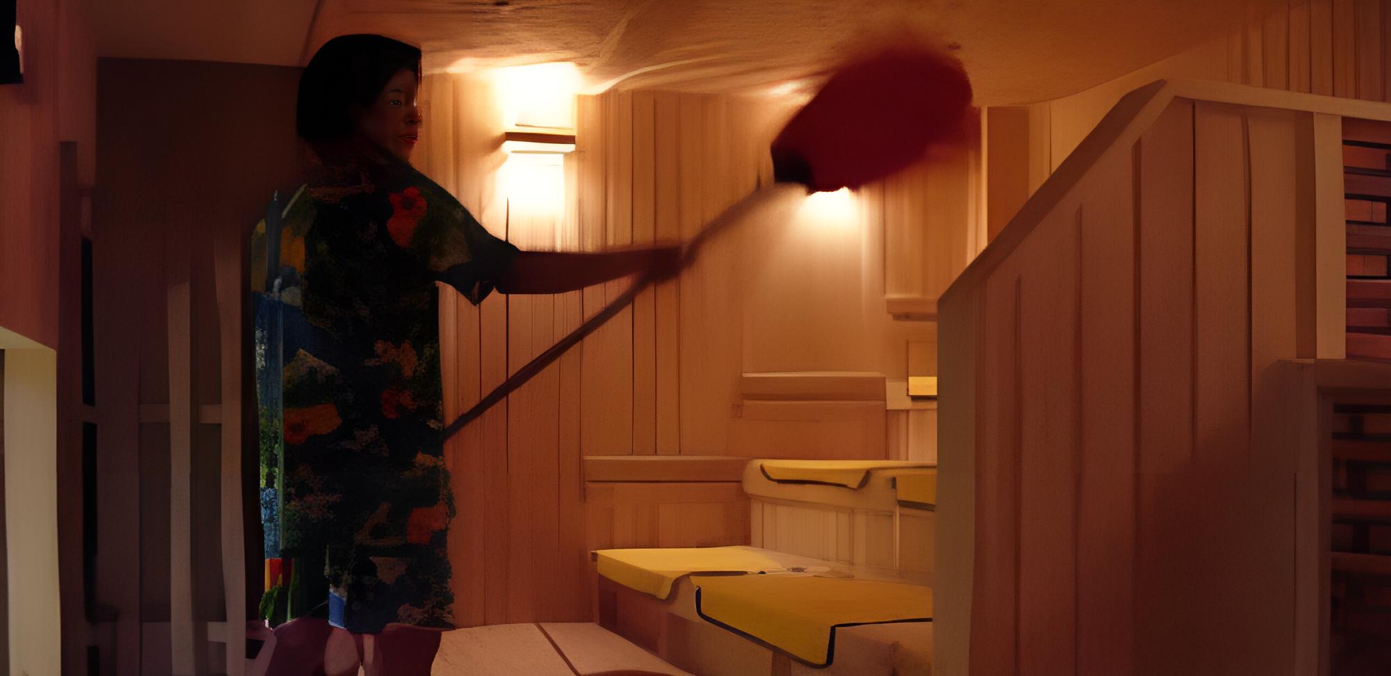 その水蒸気を大きなうちわで室内に循環させることで体感温度を一気に上昇させ大量の発汗を促すことができます。