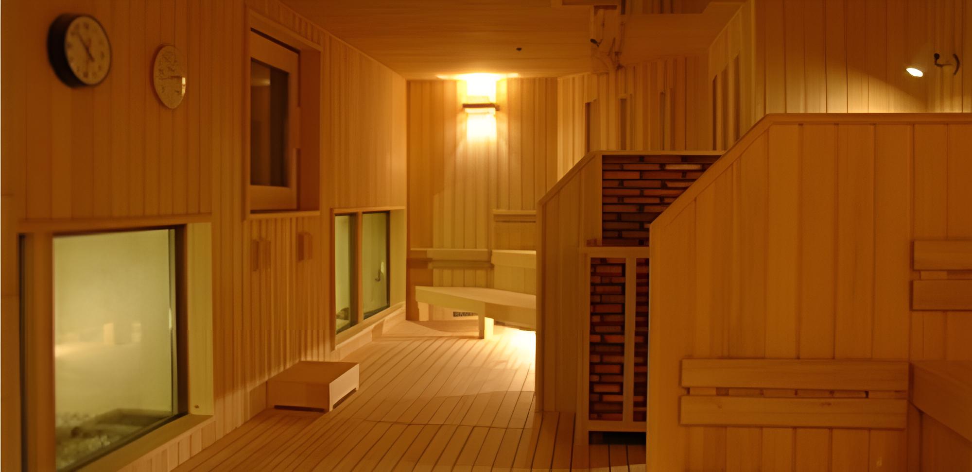 サウナ材としては最高級といわれるアバチ材をふんだんに使用した日本国内でも、類を見ない広さを誇るサウナです。