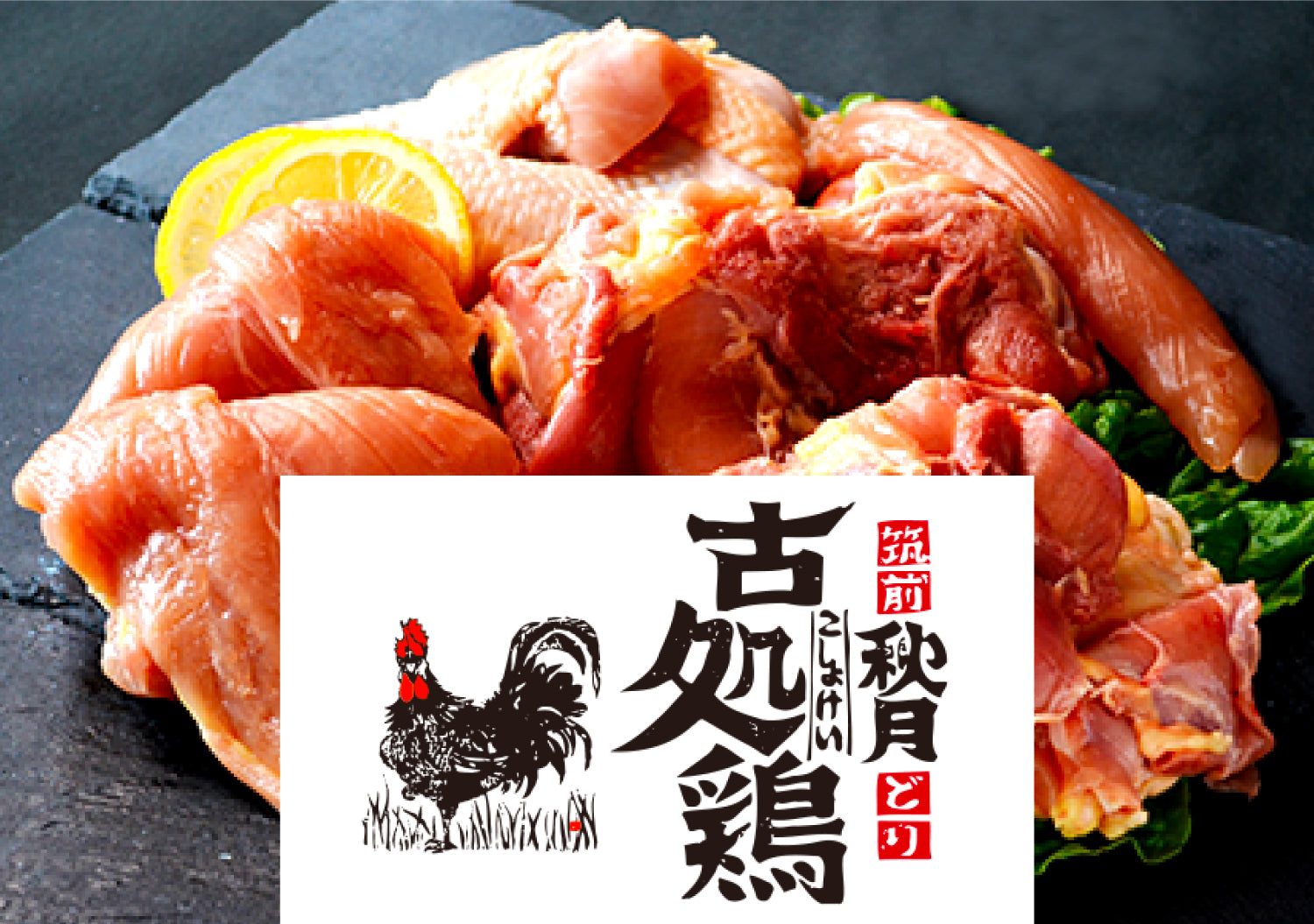 飼育日数・方法・密度・飼料など生産者としてのこだわりのある古処鶏は、限定契約農家により豊かな自然の中、エサにこだわり、長期飼育でのびのびと健康に育てた元気な赤鳥です。